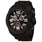 For over a quarter of a century the makers of Swiss Legend have created their own legendary reputation by bringing their loyal customers timepieces steeped in tradition, design and versatility. Swiss Legend is a brand unlike any other. It is dynamic. It is modern. It is alive.The Swiss Legend Men's Commander Collection Chronograph Black Ion-Plated Black Rubber Watch features a bold, circular dial with large, silver-toned Arabic numeral hour indexes at three, six, nine, and 12 o'clock, silver-toned bar-shaped markers at all other hours, and luminous, silver-toned hands. The three subdials displayed on the inner, textured portion of the black dial offer full chronograph function and there's a handy date display between the four and five o'clock. Designed with serrated edges, the unidirectional, black ion-plated stainless steel bezel is inscribed with indexes from zero to 60. A sturdy, black ion-plated stainless steel case, screw-down crown, and scratch-resistant mineral crystal window provide everyday durability while the oversized pushers lend to the bold look of the watch. Made from tough rubber, the black watch strap is secured with a buckle clasp. This watch is water resistant to 330 feet (100 meters) and is equipped with precise Swiss quartz movement.
